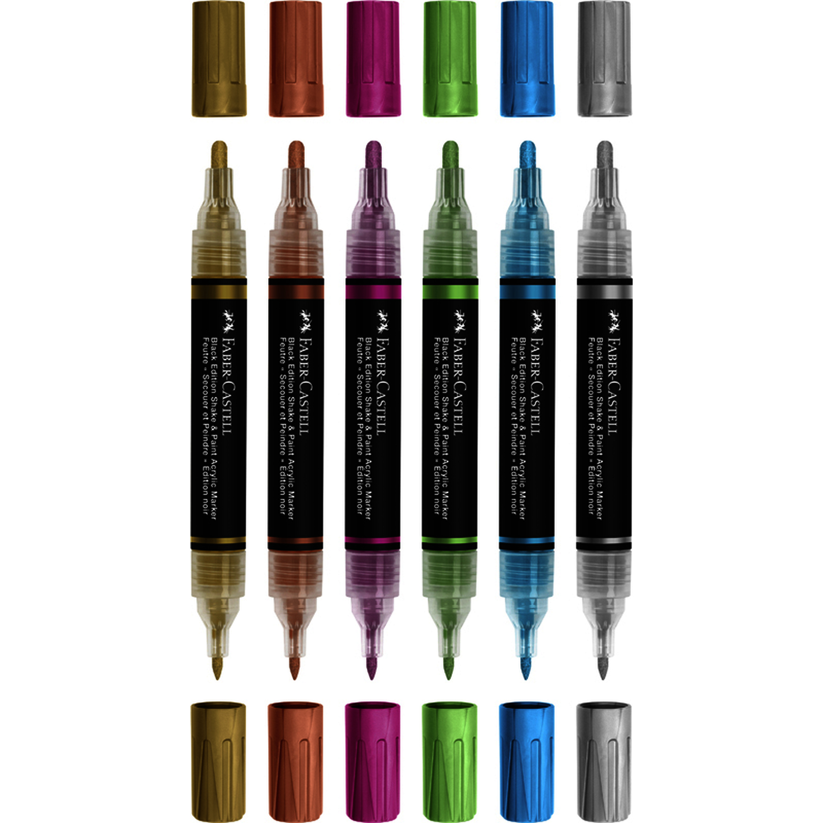 BLACK EDITION 6 MARQUEURS ACRYLIQUE DOUBLE POINTE COLORIS METALLIC