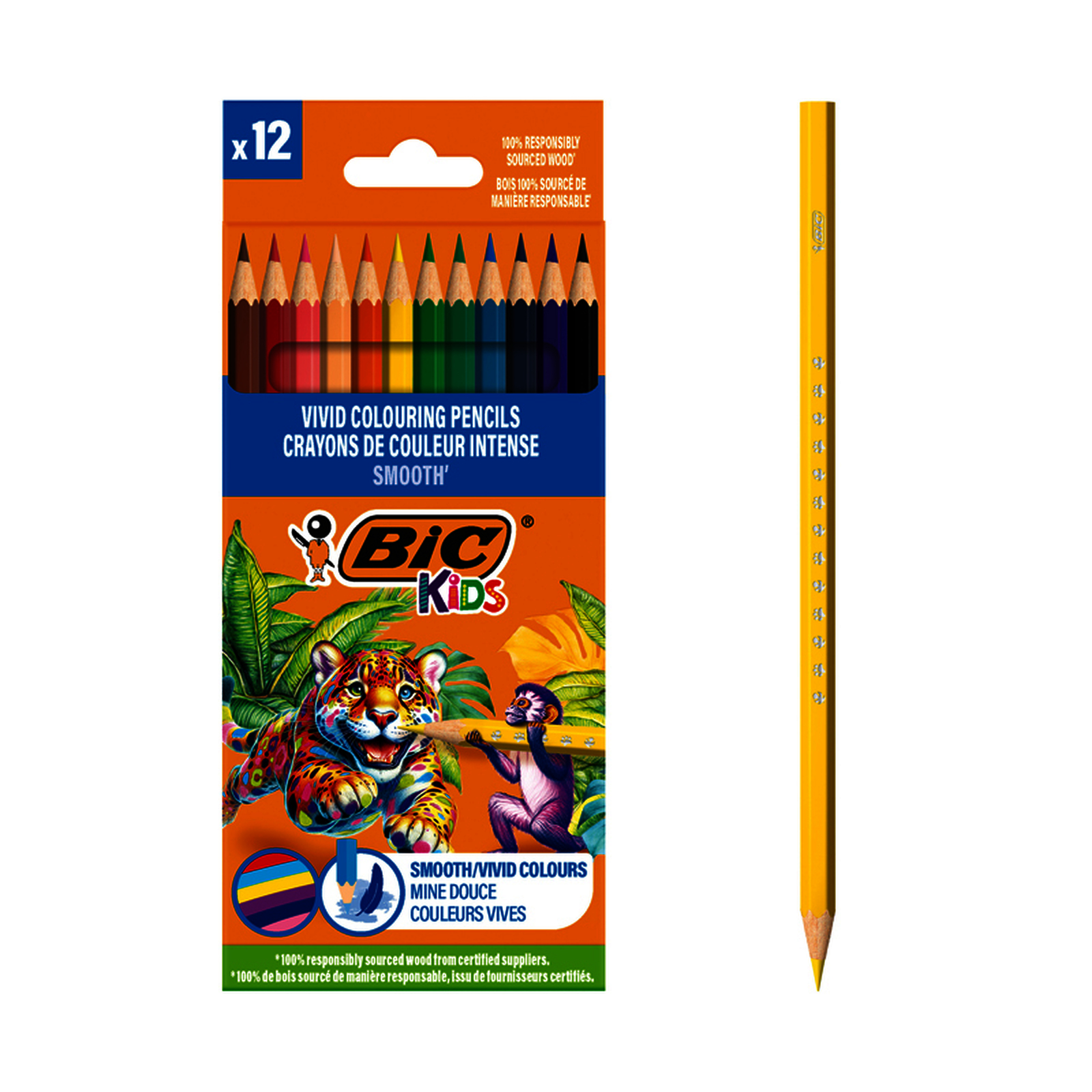 KIDS SMOOTH 12 CRAYONS COULEUR COLORIS ASSORTIS