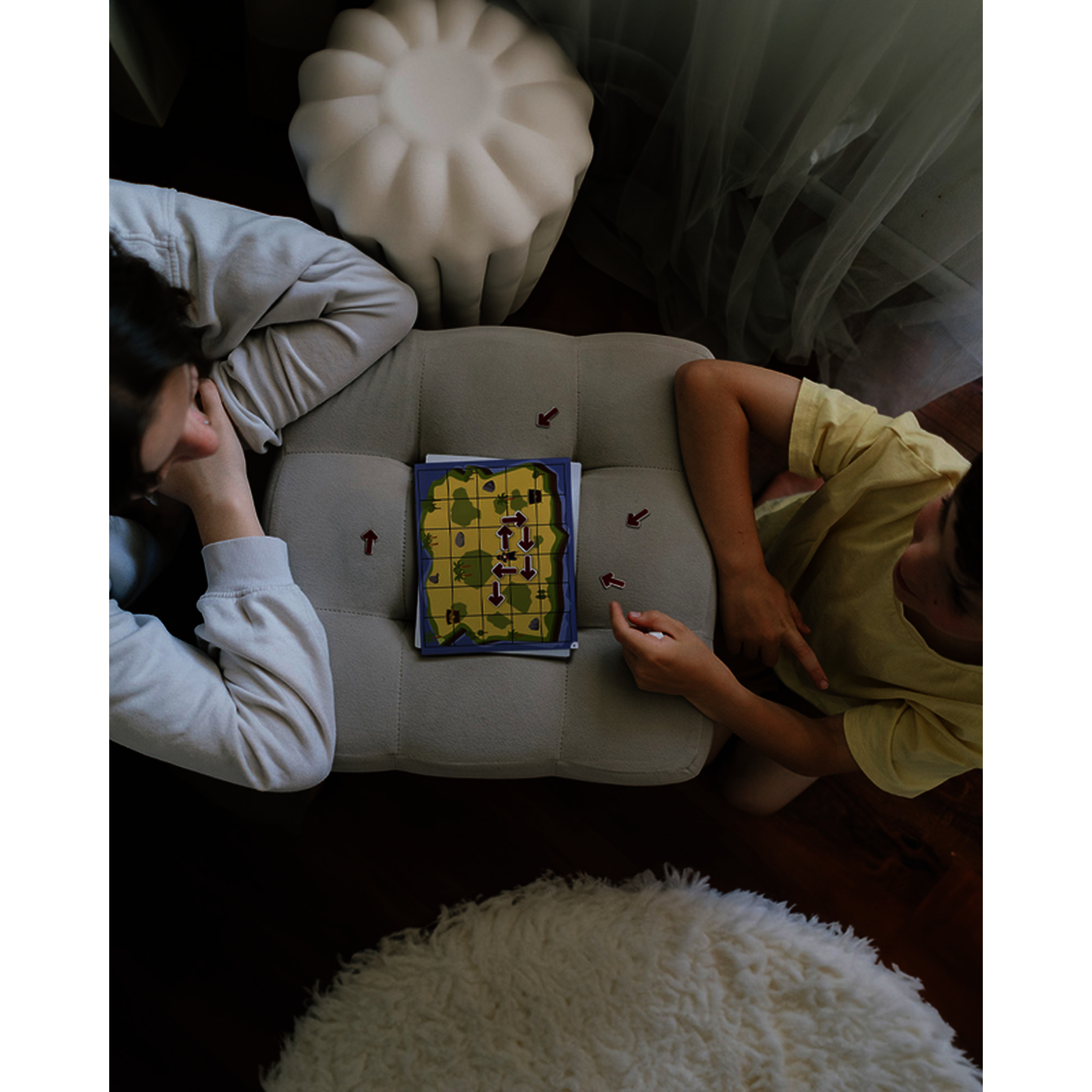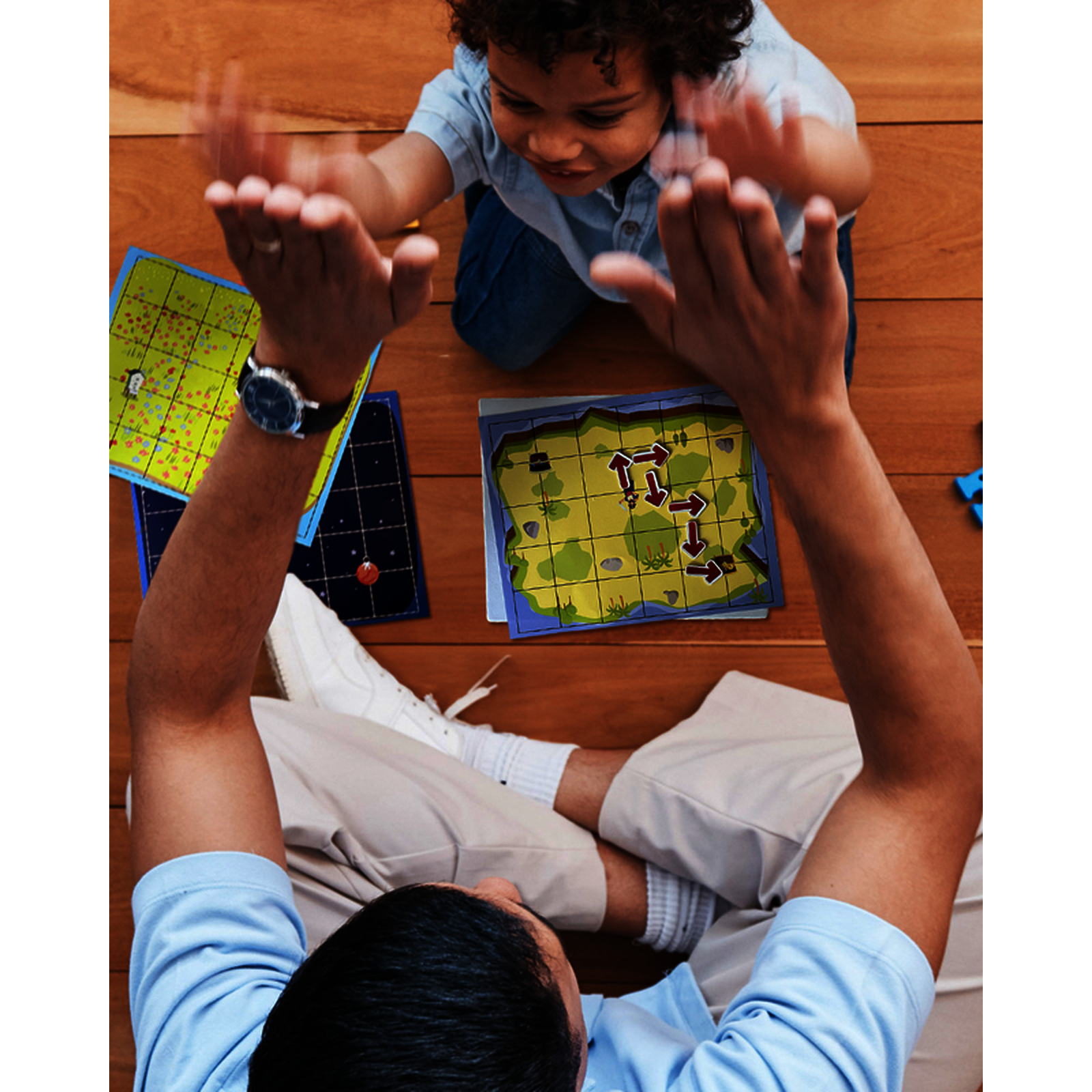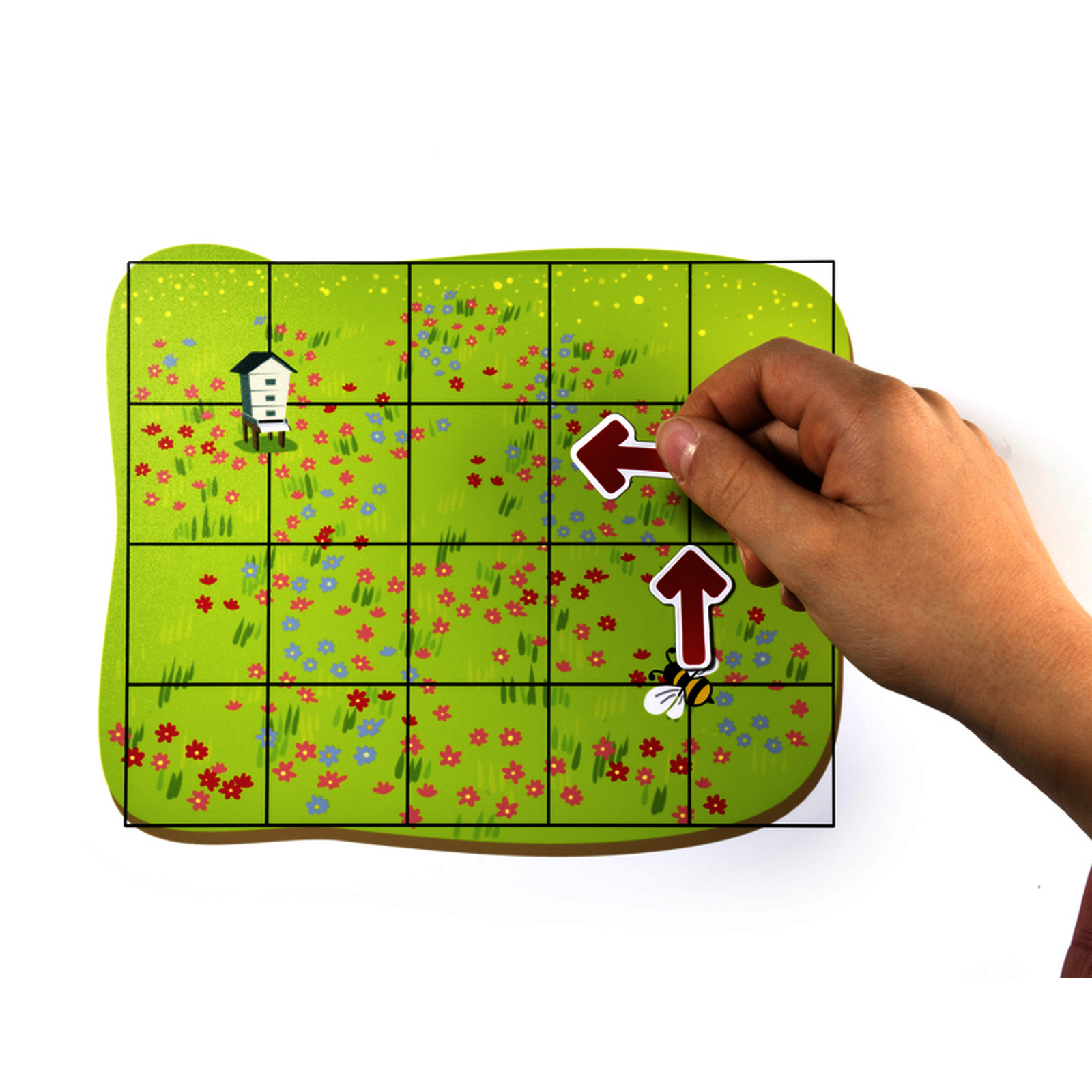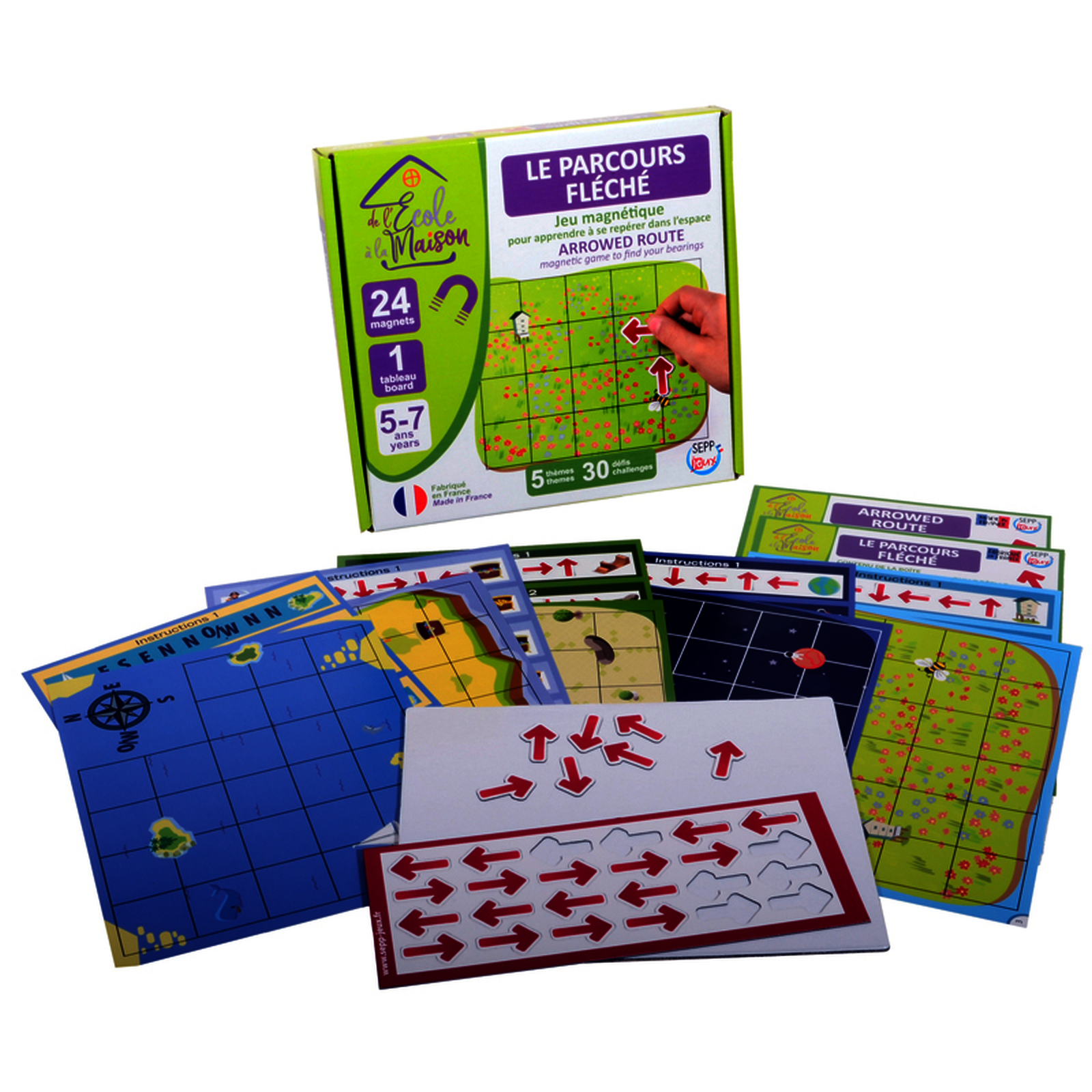 Rep?re-toi et d?place-toi sur la grille! Choisis 2 fiches de m?me th?me. En suivant les parcours propos?s (6 niveaux de difficult?), place les fl?ches sur le fond pour r?ussir ? relier l?abeille aux ruches, le pirate aux tr?sors, la fus?e aux plan?tes?