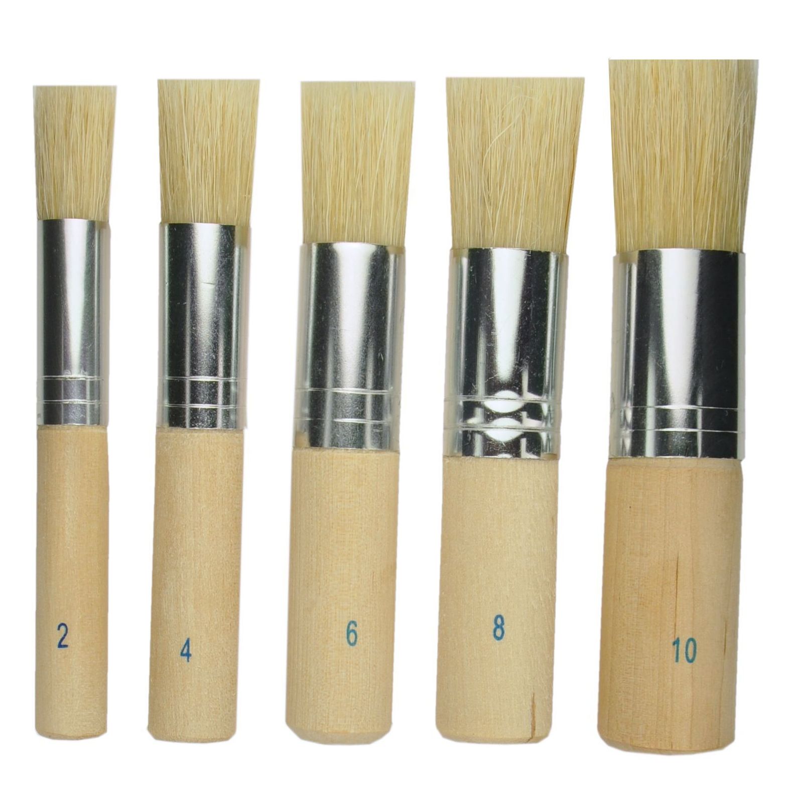 Virole en fer blanc, manche bois, soie de porc blanche. Brosse spécialement adaptée à la réalisation de pochoirs et de motifs précis. Sa forme spécifique permet une application sans bavure de la peinture pour pochoir.